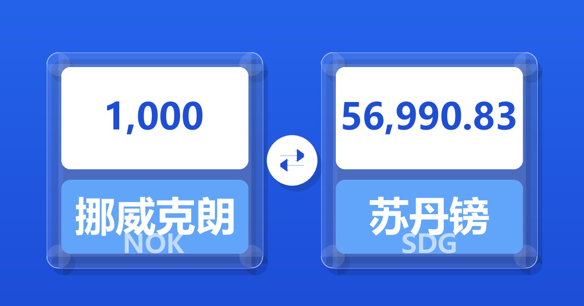 1,000 挪威克朗 (NOK) = 56,990.83 苏丹镑 (SDG)