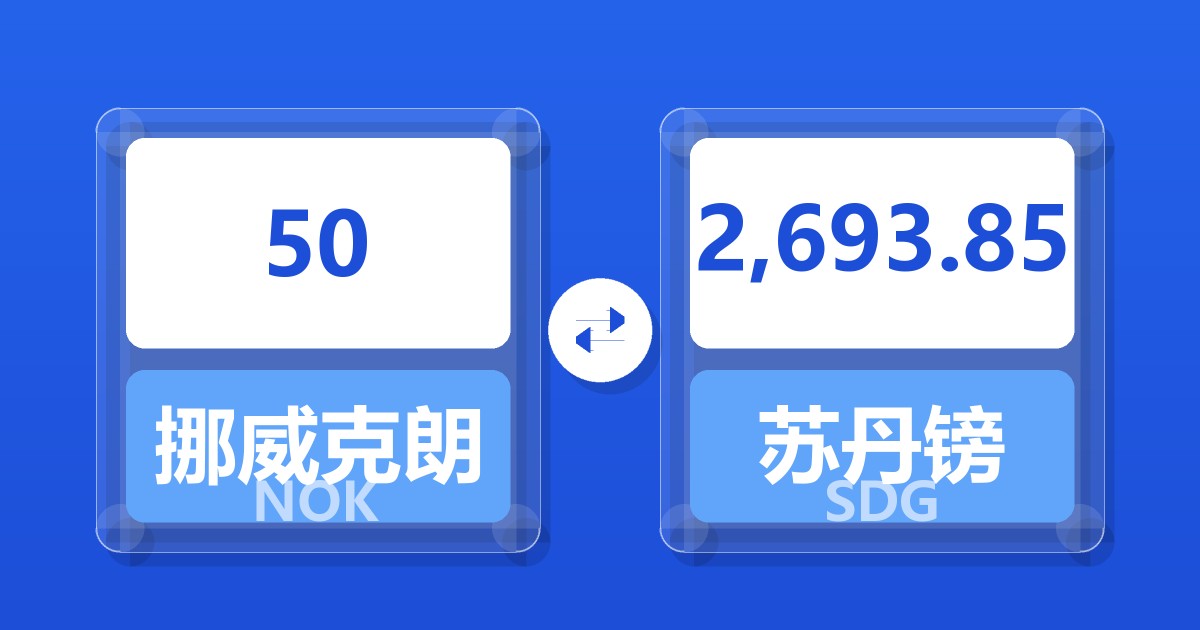 50 挪威克朗 (NOK) = 2,849.54 苏丹镑 (SDG)
