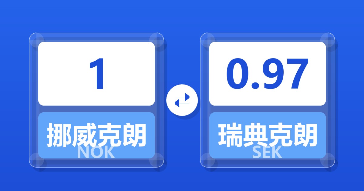 1 挪威克朗 (NOK) = 0.97 瑞典克朗 (SEK)