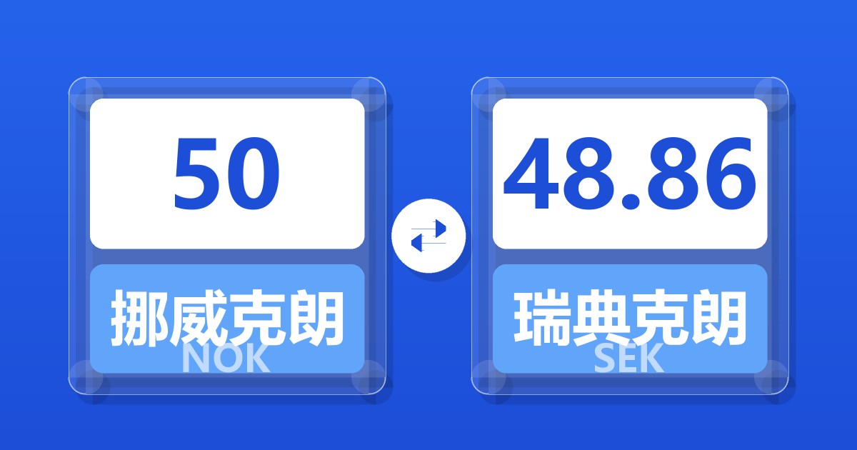 50 挪威克朗 (NOK) = 48.63 瑞典克朗 (SEK)