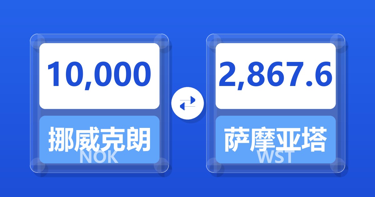 10,000 挪威克朗 (NOK) = 2,867.45 萨摩亚塔拉 (WST)