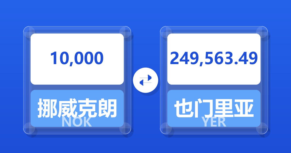 10,000 挪威克朗 (NOK) = 249,563.49 也门里亚尔 (YER)