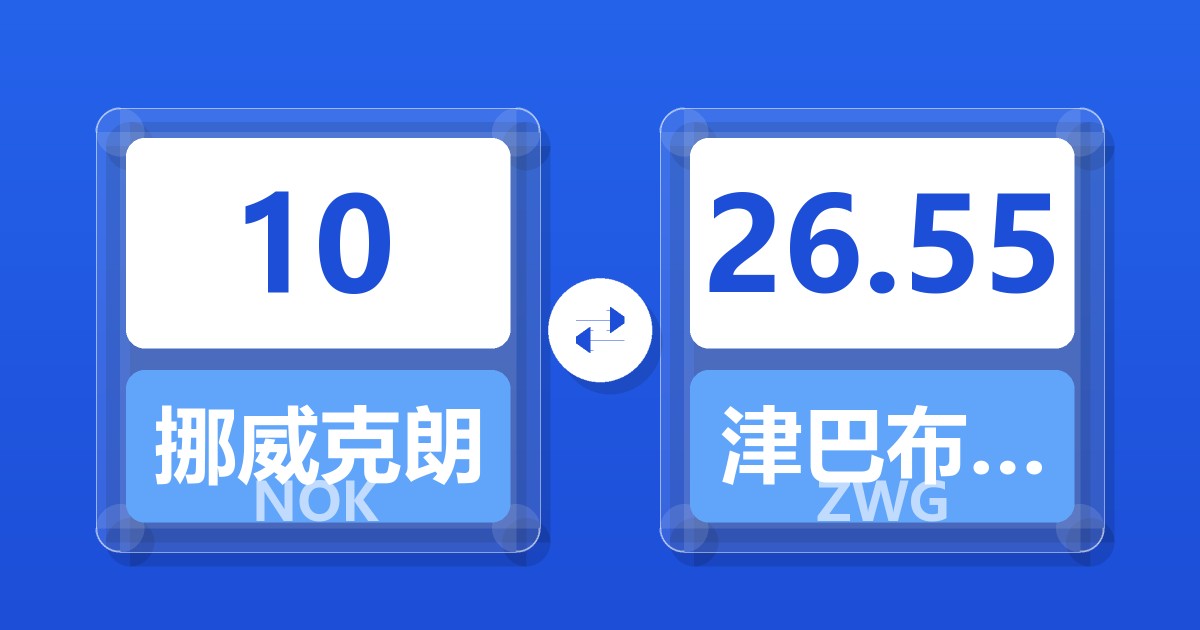 10 挪威克朗 (NOK) = 26.39 津巴布韦元(新) (ZWG)
