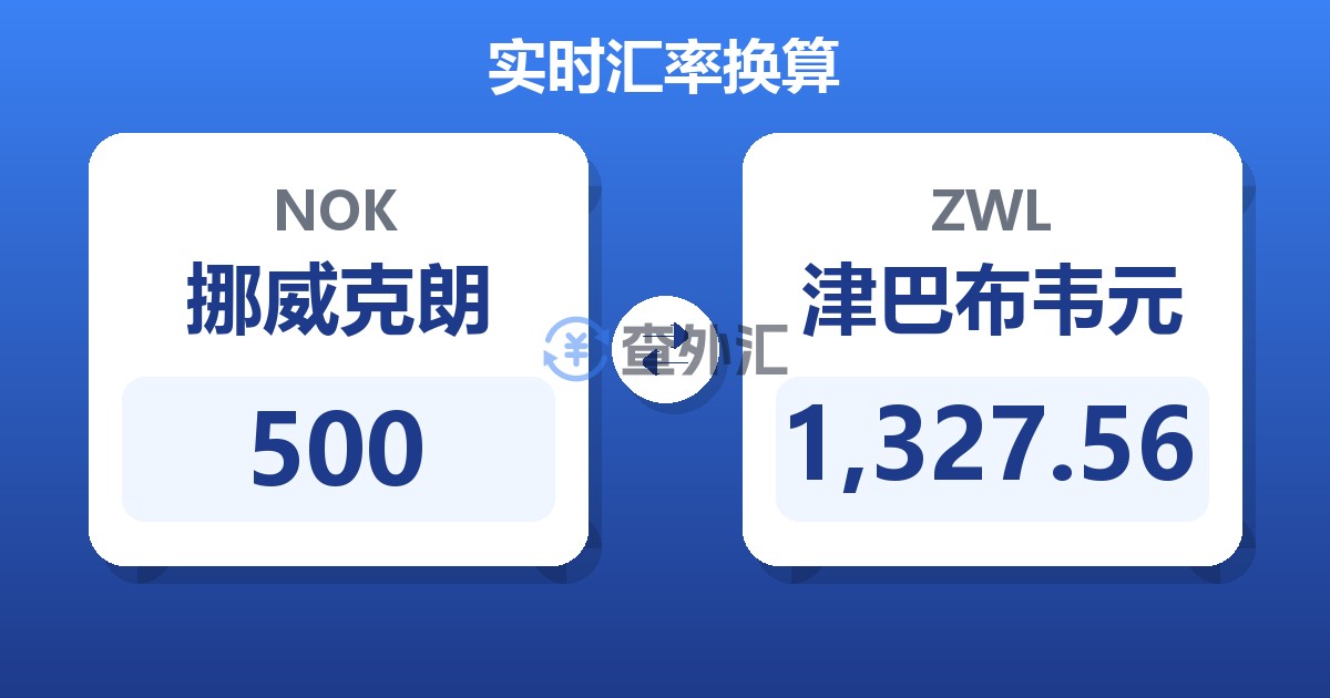 500 挪威克朗 (NOK) = 1,319.31 津巴布韦元 (ZWL)