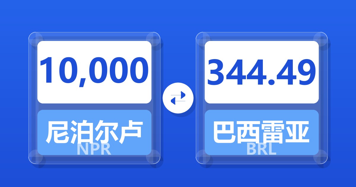 10,000 尼泊尔卢比 (NPR) = 344.49 巴西雷亚尔 (BRL)