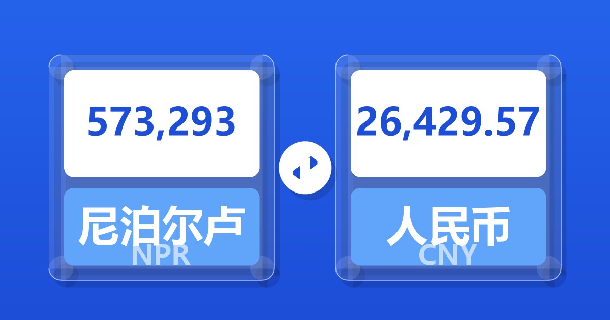 573,293 尼泊尔卢比 (NPR) = 26,488.08 人民币 (CNY)