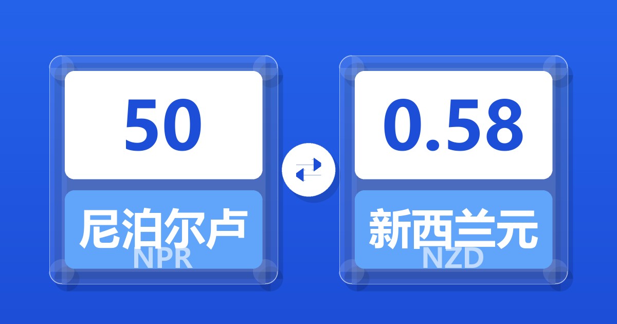 50 尼泊尔卢比 (NPR) = 0.58 新西兰元 (NZD)
