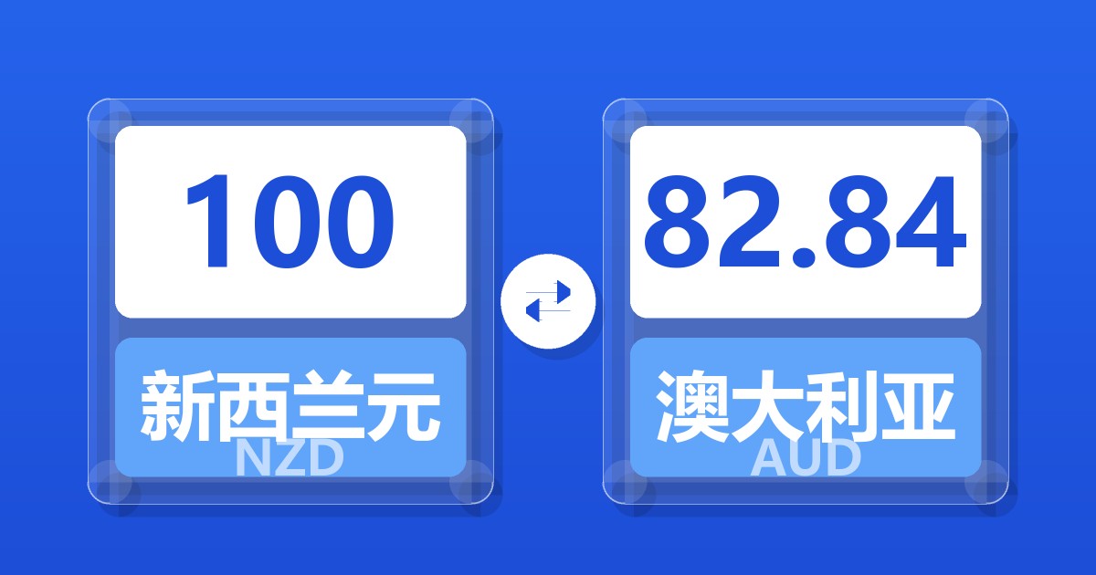 100 新西兰元 (NZD) = 82.71 澳大利亚元 (AUD)