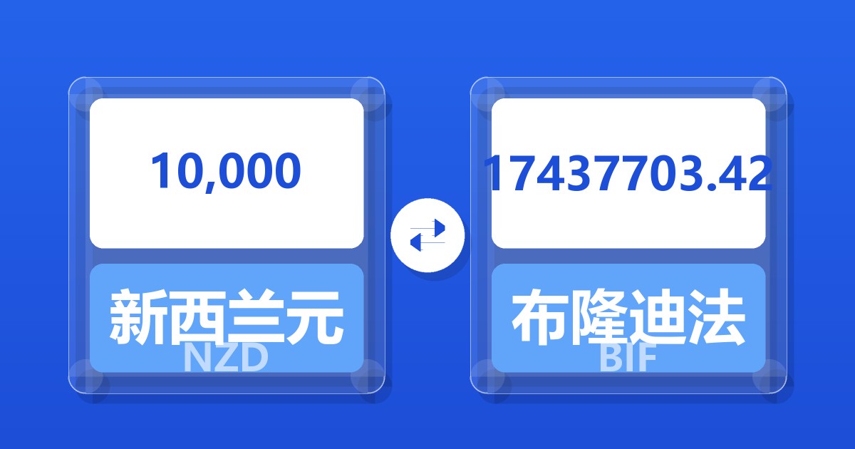 10,000 新西兰元 (NZD) = 17,373,251.37 布隆迪法郎 (BIF)