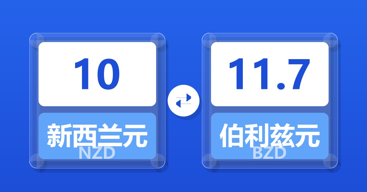 10 新西兰元 (NZD) = 11.65 伯利兹元 (BZD)