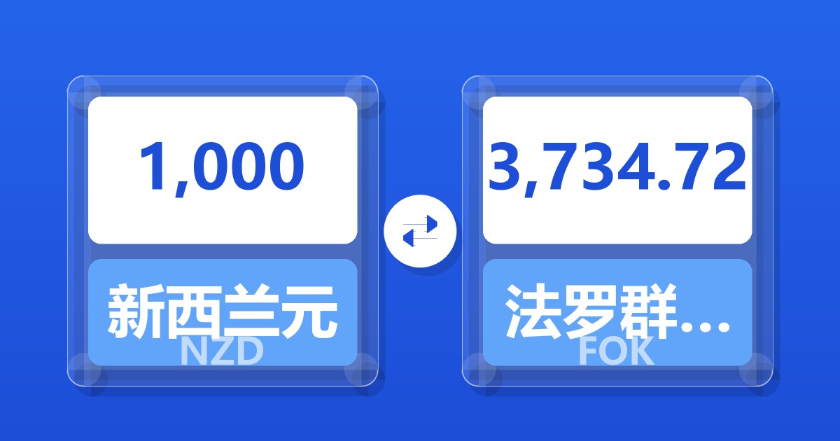 1,000 新西兰元 (NZD) = 3,722.00 法罗群岛克朗 (FOK)