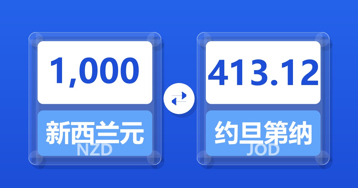 1,000 新西兰元 (NZD) = 413.12 约旦第纳尔 (JOD)