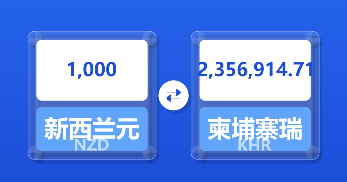 1,000 新西兰元 (NZD) = 2,346,613.04 柬埔寨瑞尔 (KHR)