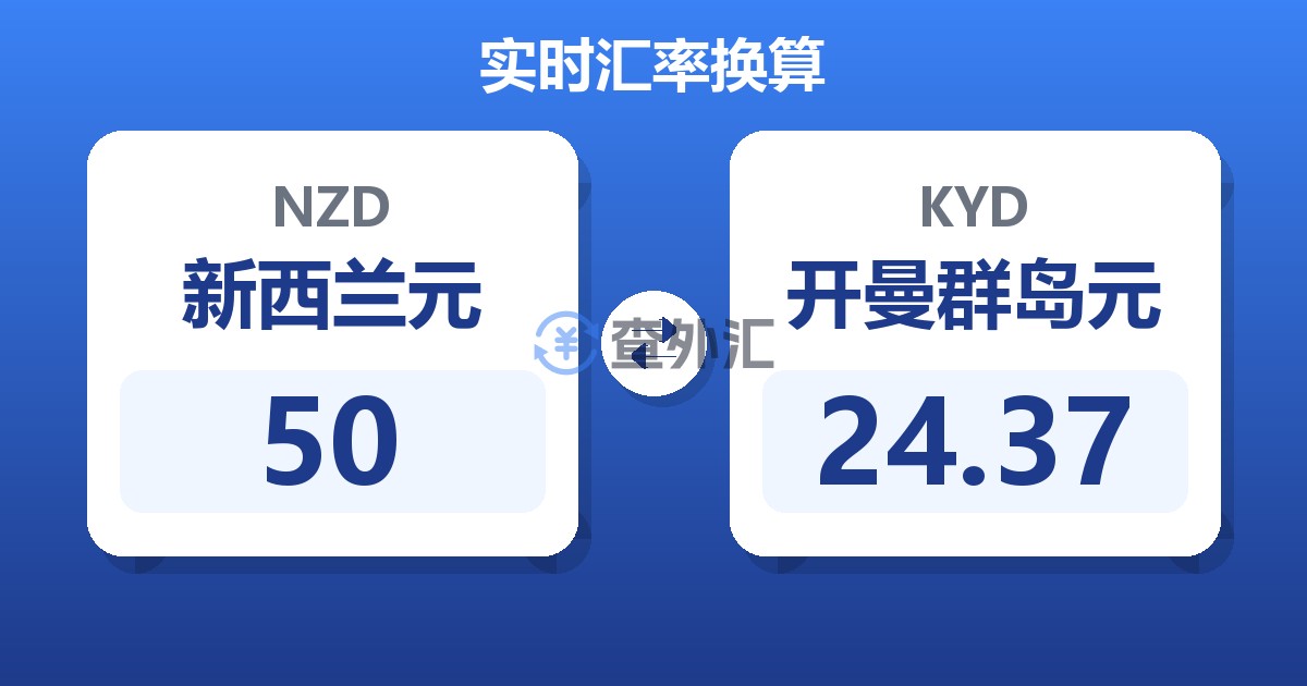 50 新西兰元 (NZD) = 24.28 开曼群岛元 (KYD)