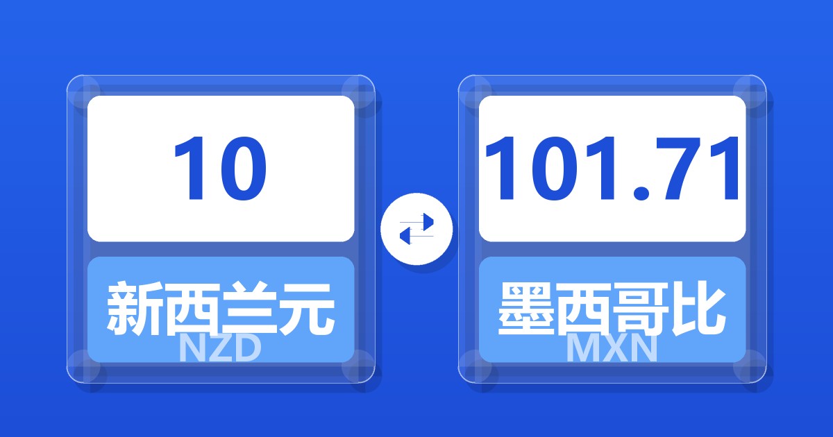 10 新西兰元 (NZD) = 101.59 墨西哥比索 (MXN)