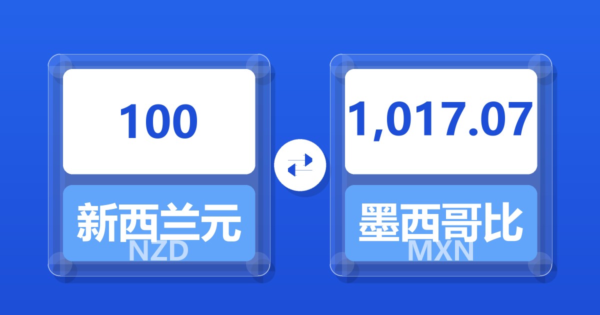 100 新西兰元 (NZD) = 1,015.92 墨西哥比索 (MXN)