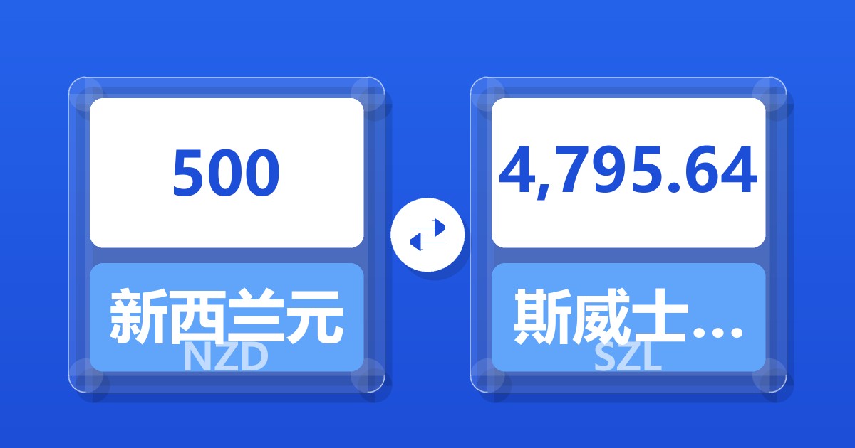 500 新西兰元 (NZD) = 4,777.33 斯威士兰里兰吉尼 (SZL)