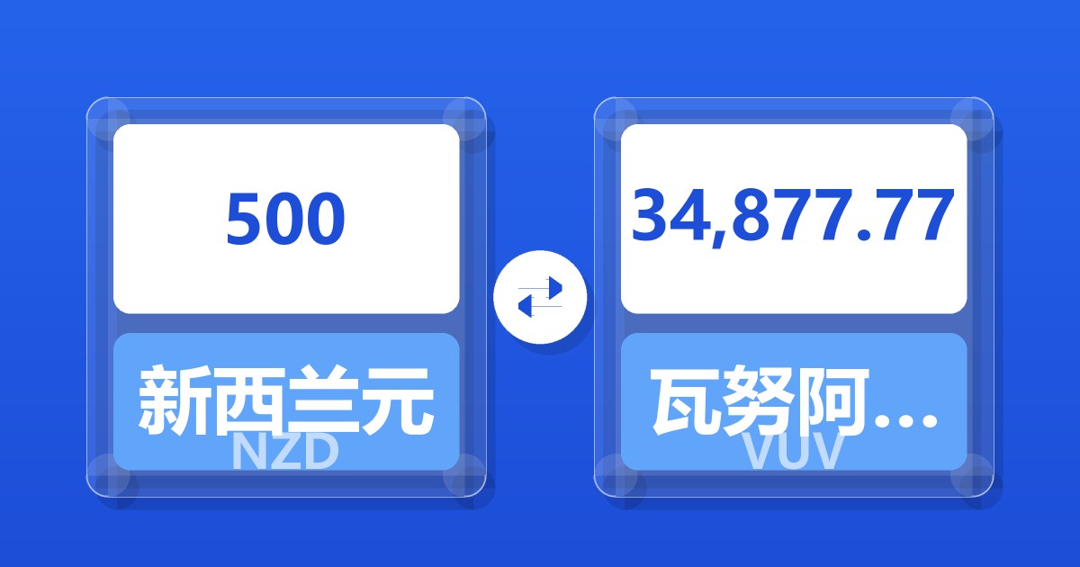 500 新西兰元 (NZD) = 35,004.08 瓦努阿图瓦图 (VUV)