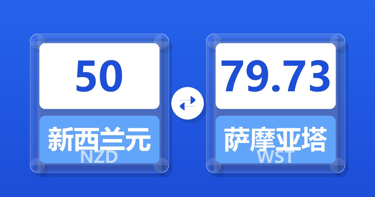50 新西兰元 (NZD) = 79.90 萨摩亚塔拉 (WST)