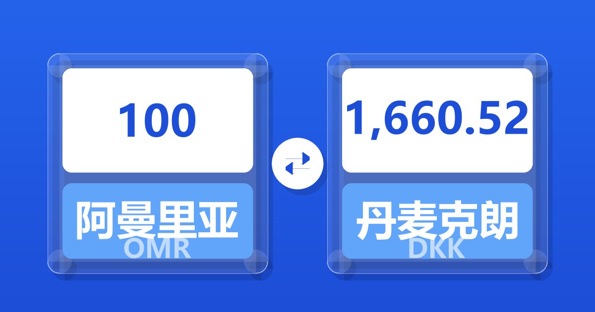 100 阿曼里亚尔 (OMR) = 1,661.27 丹麦克朗 (DKK)