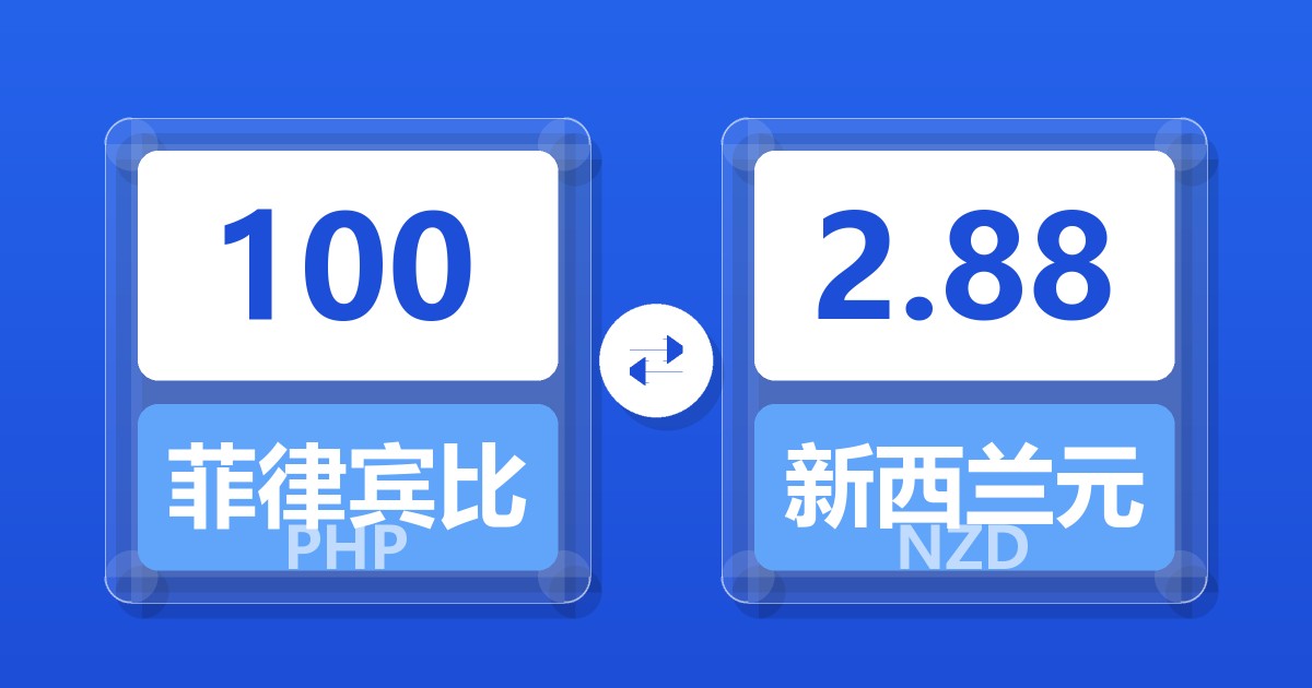 100 菲律宾比索 (PHP) = 2.88 新西兰元 (NZD)