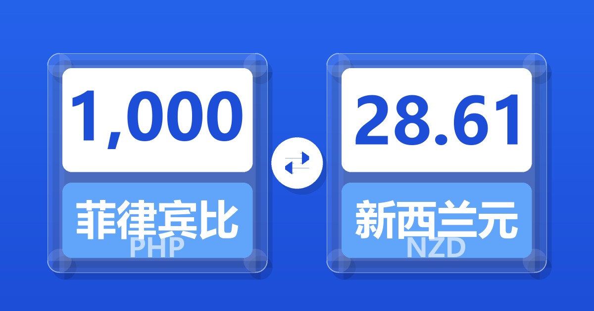 1,000 菲律宾比索 (PHP) = 28.83 新西兰元 (NZD)