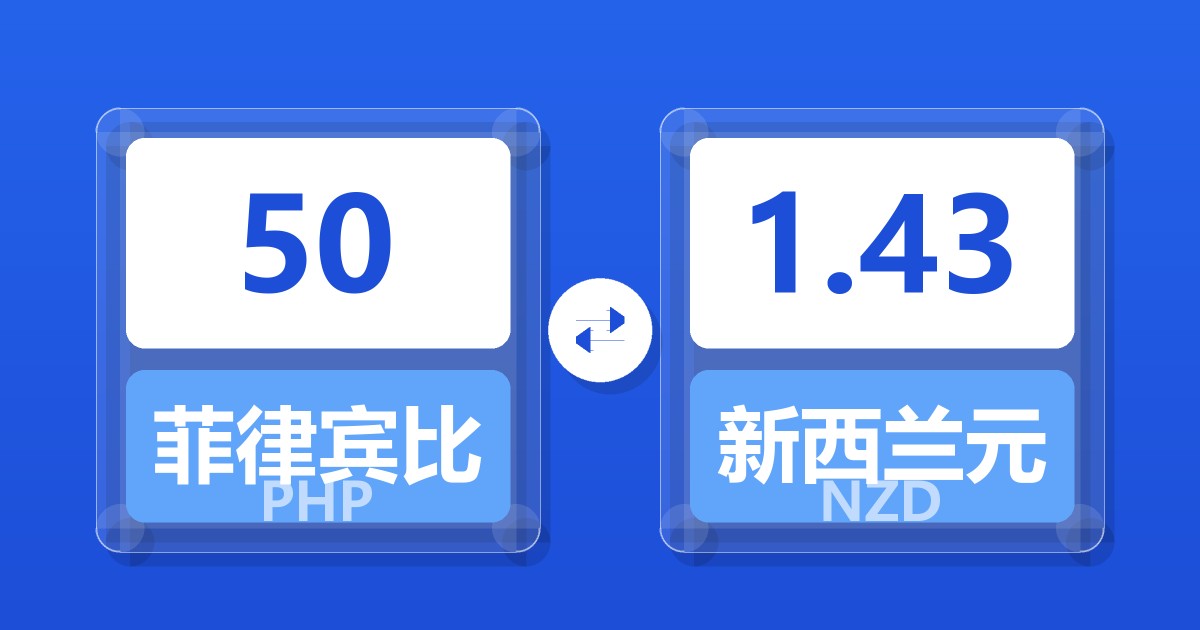 50 菲律宾比索 (PHP) = 1.44 新西兰元 (NZD)