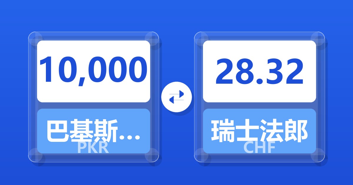 10,000 巴基斯坦卢比 (PKR) = 28.36 瑞士法郎 (CHF)