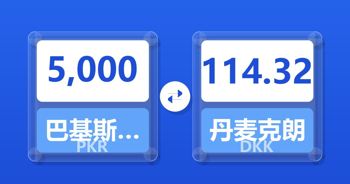 5,000 巴基斯坦卢比 (PKR) = 114.56 丹麦克朗 (DKK)