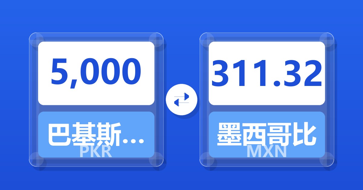 5,000 巴基斯坦卢比 (PKR) = 312.70 墨西哥比索 (MXN)