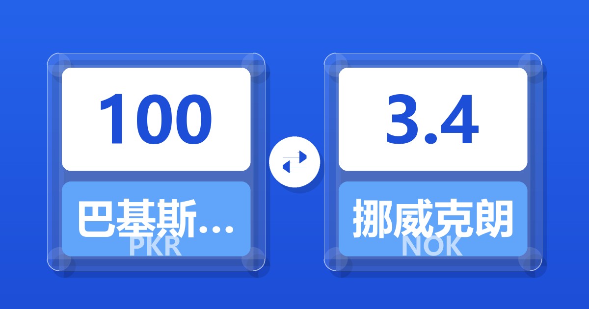 100 巴基斯坦卢比 (PKR) = 3.43 挪威克朗 (NOK)