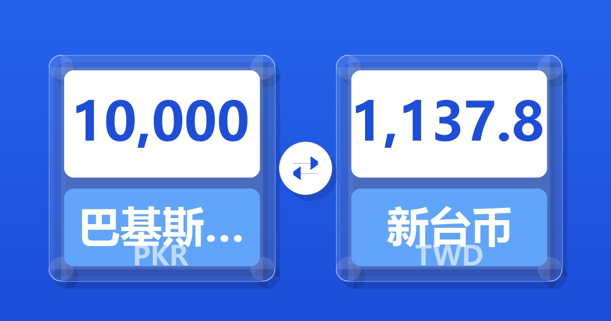 10,000 巴基斯坦卢比 (PKR) = 1,139.05 新台币 (TWD)