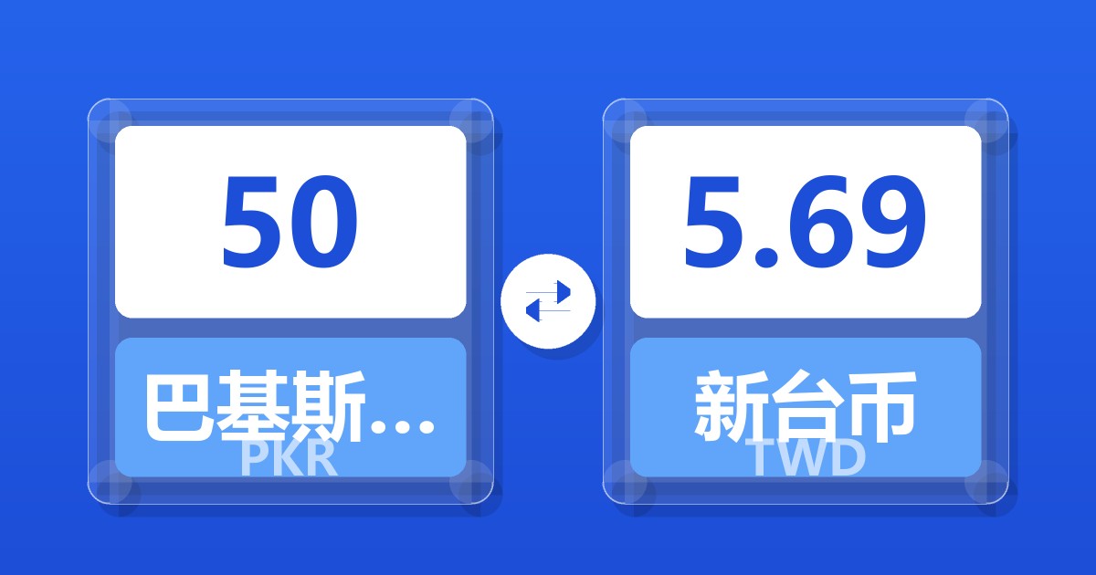 50 巴基斯坦卢比 (PKR) = 5.70 新台币 (TWD)