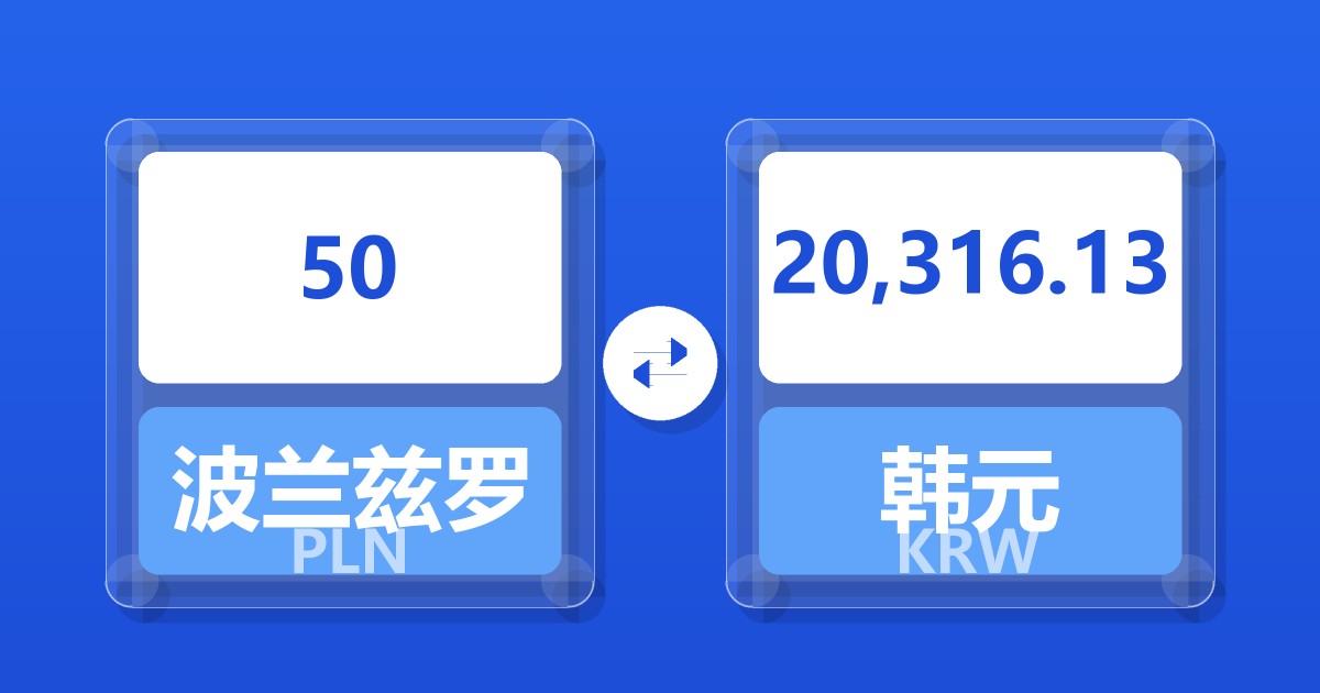 50 波兰兹罗提 (PLN) = 20,279.48 韩元 (KRW)