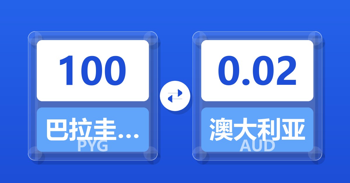 100 巴拉圭瓜拉尼 (PYG) = 0.02 澳大利亚元 (AUD)