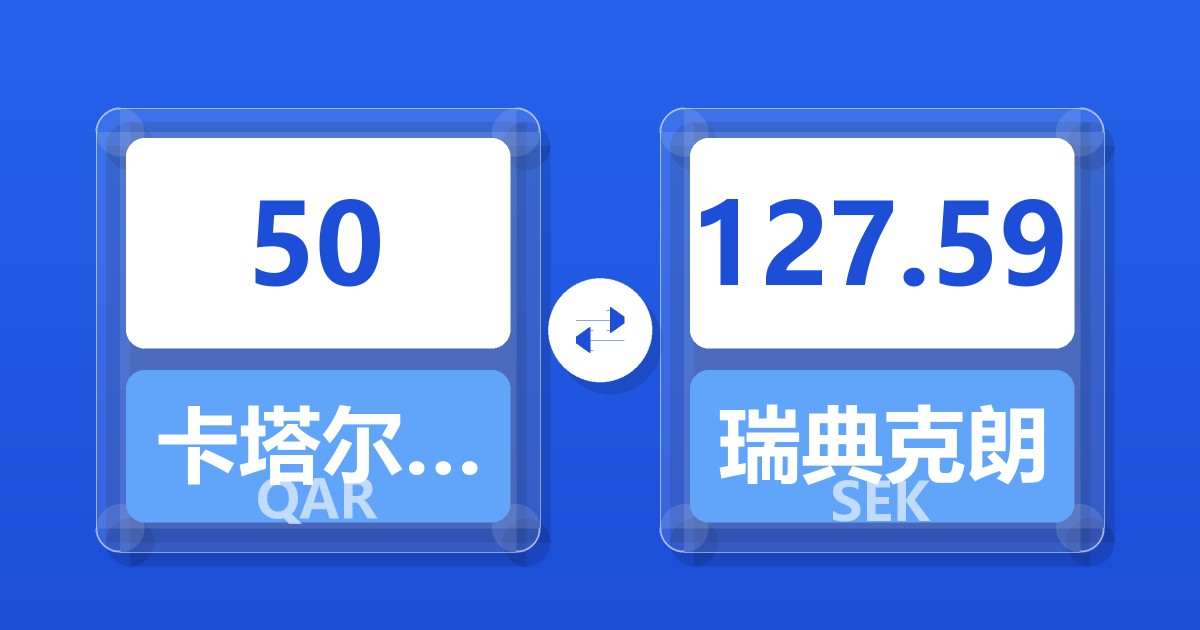 50 卡塔尔里亚尔 (QAR) = 127.79 瑞典克朗 (SEK)