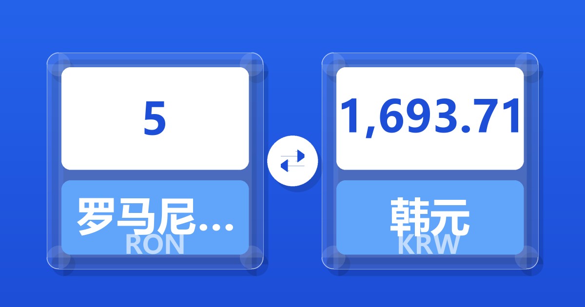 5 罗马尼亚列伊 (RON) = 1,695.09 韩元 (KRW)