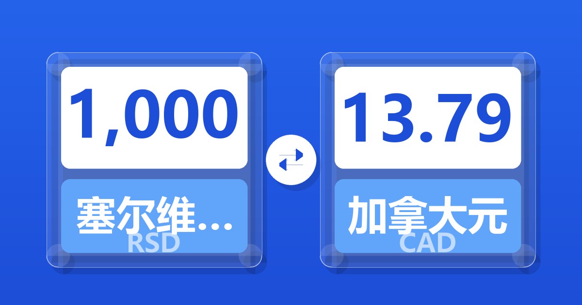 1,000 塞尔维亚第纳尔 (RSD) = 13.79 加拿大元 (CAD)