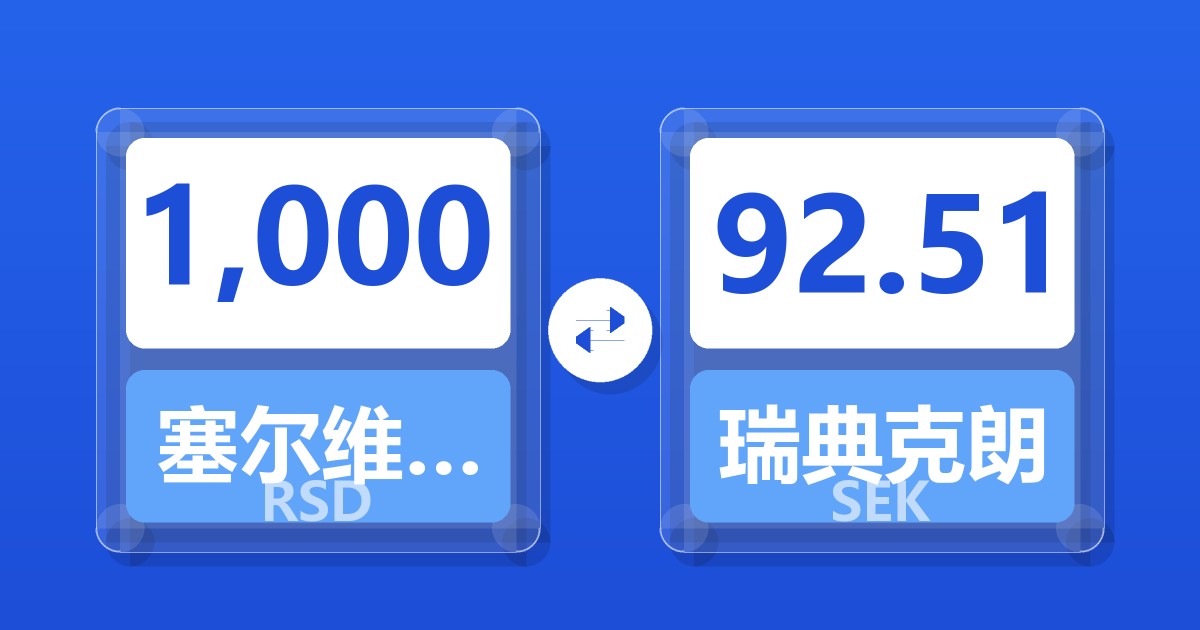 1,000 塞尔维亚第纳尔 (RSD) = 92.64 瑞典克朗 (SEK)