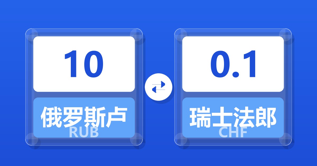 10 俄罗斯卢布 (RUB) = 0.10 瑞士法郎 (CHF)