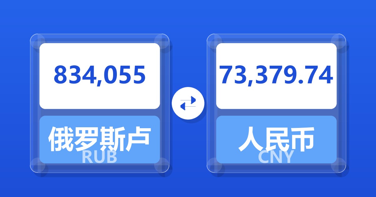 834,055 俄罗斯卢布 (RUB) = 72,682.60 人民币 (CNY)