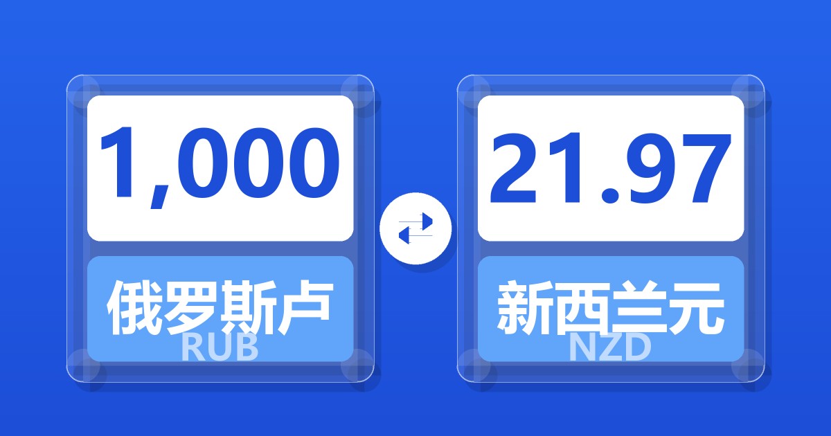 1,000 俄罗斯卢布 (RUB) = 21.85 新西兰元 (NZD)
