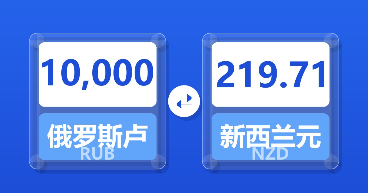 10,000 俄罗斯卢布 (RUB) = 218.53 新西兰元 (NZD)