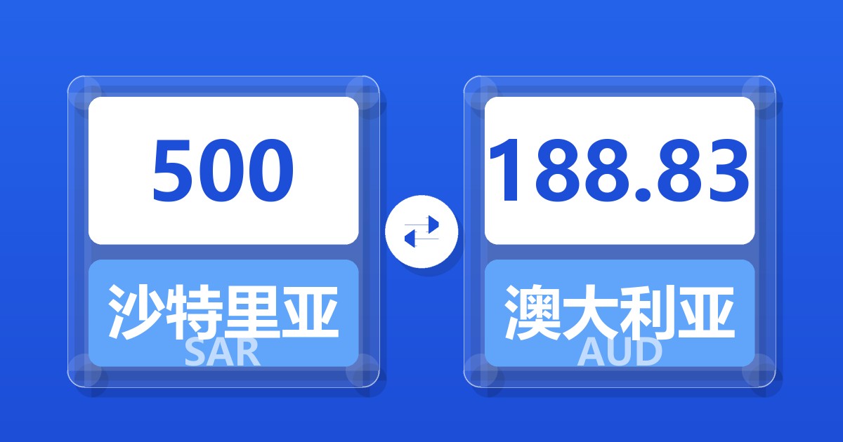500 沙特里亚尔 (SAR) = 189.25 澳大利亚元 (AUD)