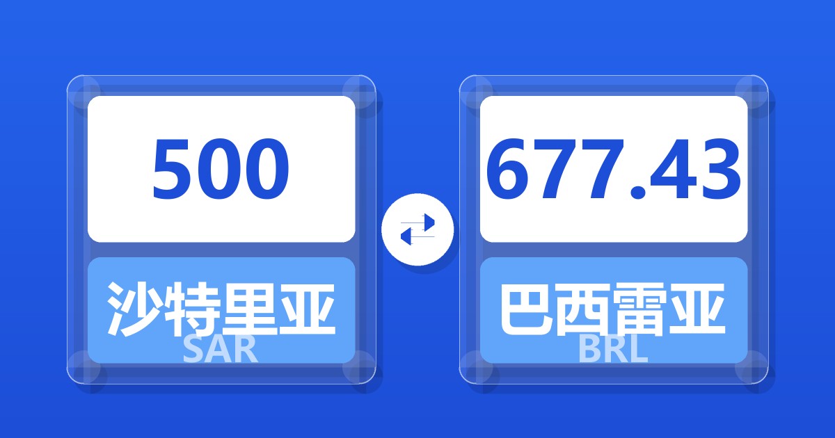 500 沙特里亚尔 (SAR) = 680.35 巴西雷亚尔 (BRL)