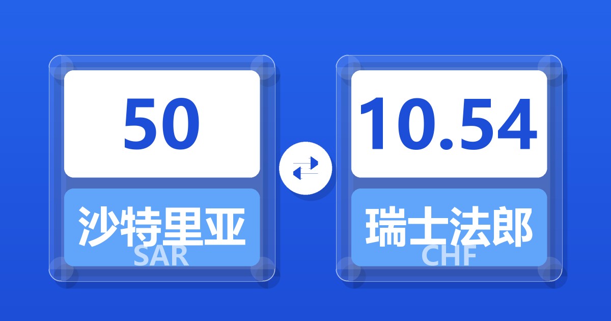 50 沙特里亚尔 (SAR) = 10.54 瑞士法郎 (CHF)