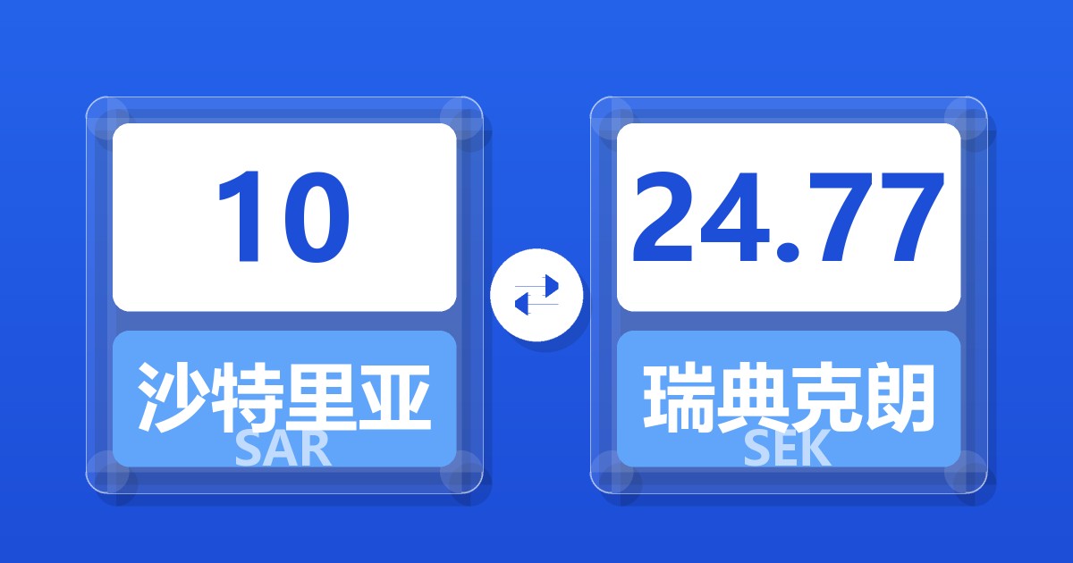 10 沙特里亚尔 (SAR) = 24.81 瑞典克朗 (SEK)