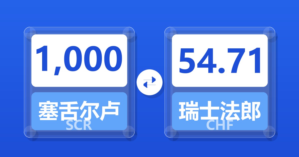 1,000 塞舌尔卢比 (SCR) = 54.71 瑞士法郎 (CHF)