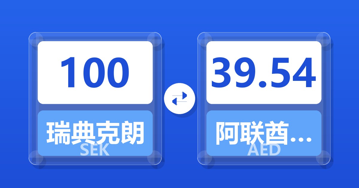 100 瑞典克朗 (SEK) = 39.48 阿联酋迪拉姆 (AED)