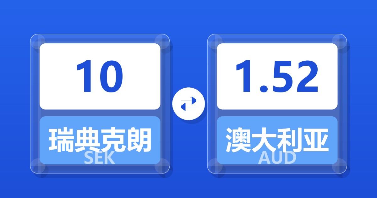 10 瑞典克朗 (SEK) = 1.53 澳大利亚元 (AUD)